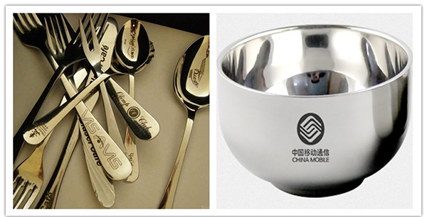 這些不銹鋼餐具上都會雕刻一下LOGO商標(biāo)、文字圖案等。為了防止掉色和脫落商家們現(xiàn)在都采用激光的方式來完成。而采用激光雕刻的方式只能雕刻單一的白色、黑色、灰色、產(chǎn)品的本身。這就無法很好的滿足銷售者的需求,而商家為了滿足客戶的一些不同需求。他們研發(fā)出在不銹鋼餐具上雕刻一些彩色的圖案用來吸引客戶的需求。而鴻鐳激光就可以為消費者實現(xiàn)彩色鐳雕。打標(biāo)速度快。計算機(jī)控制下的激光光束可以高速移動,打標(biāo)過程可在數(shù)秒內(nèi)完成。打標(biāo)精度高: 激光打標(biāo)機(jī)打標(biāo)標(biāo)記清楚、持久、美觀。雕刻的物品圖紋精細(xì)。而且可以在極小的不銹鋼材料上可以印制大量數(shù)據(jù)。環(huán)境(觸摸、酸性及減性氣體、高溫、低溫等)的變化不會使打標(biāo)標(biāo)記消退。